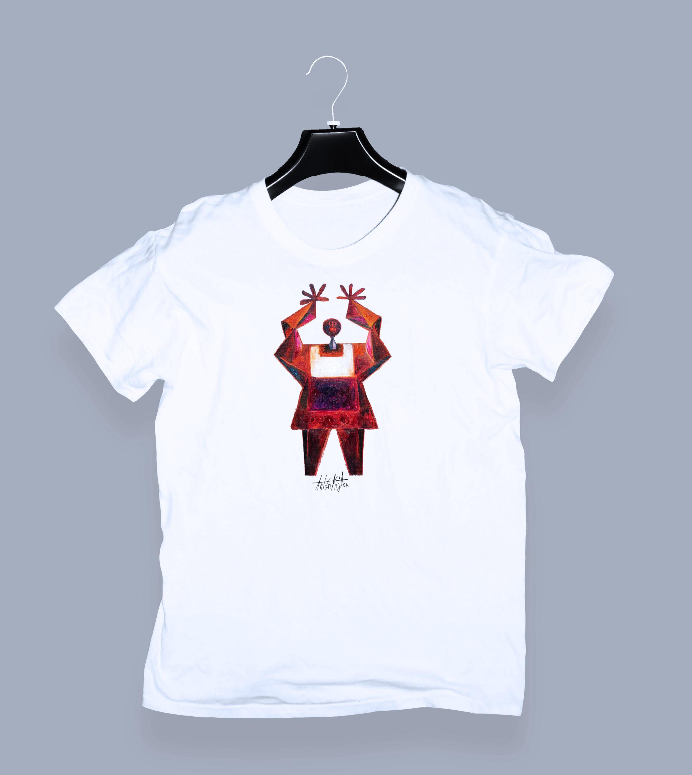 White t-shirt with Antún Kojtom’s print.
